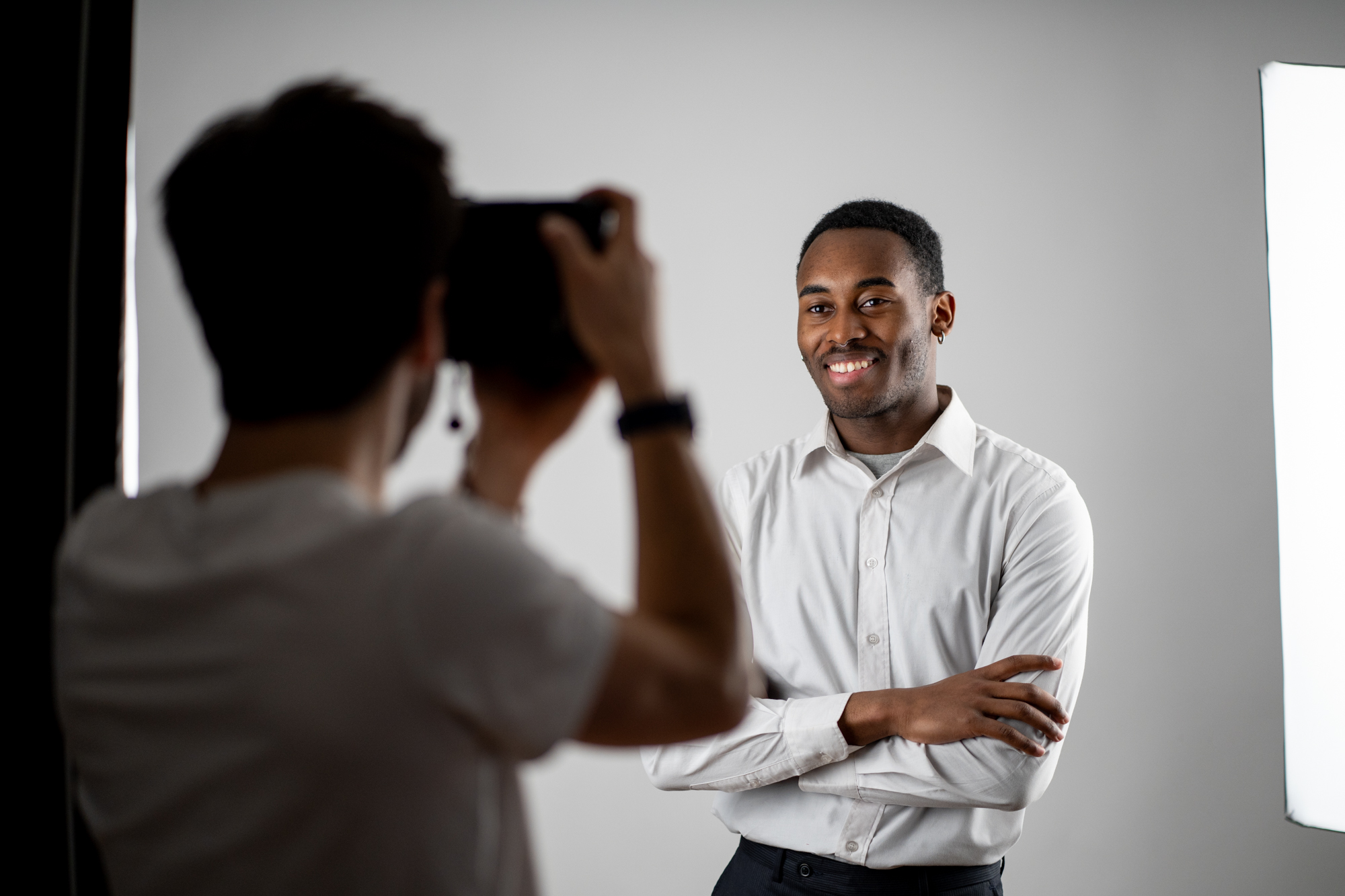 - Le studio photo : idéal pour des portraits uniformes, sobres et intemporels, adaptés aux trombinoscopes, aux rapports annuels et aux sites institutionnels.
