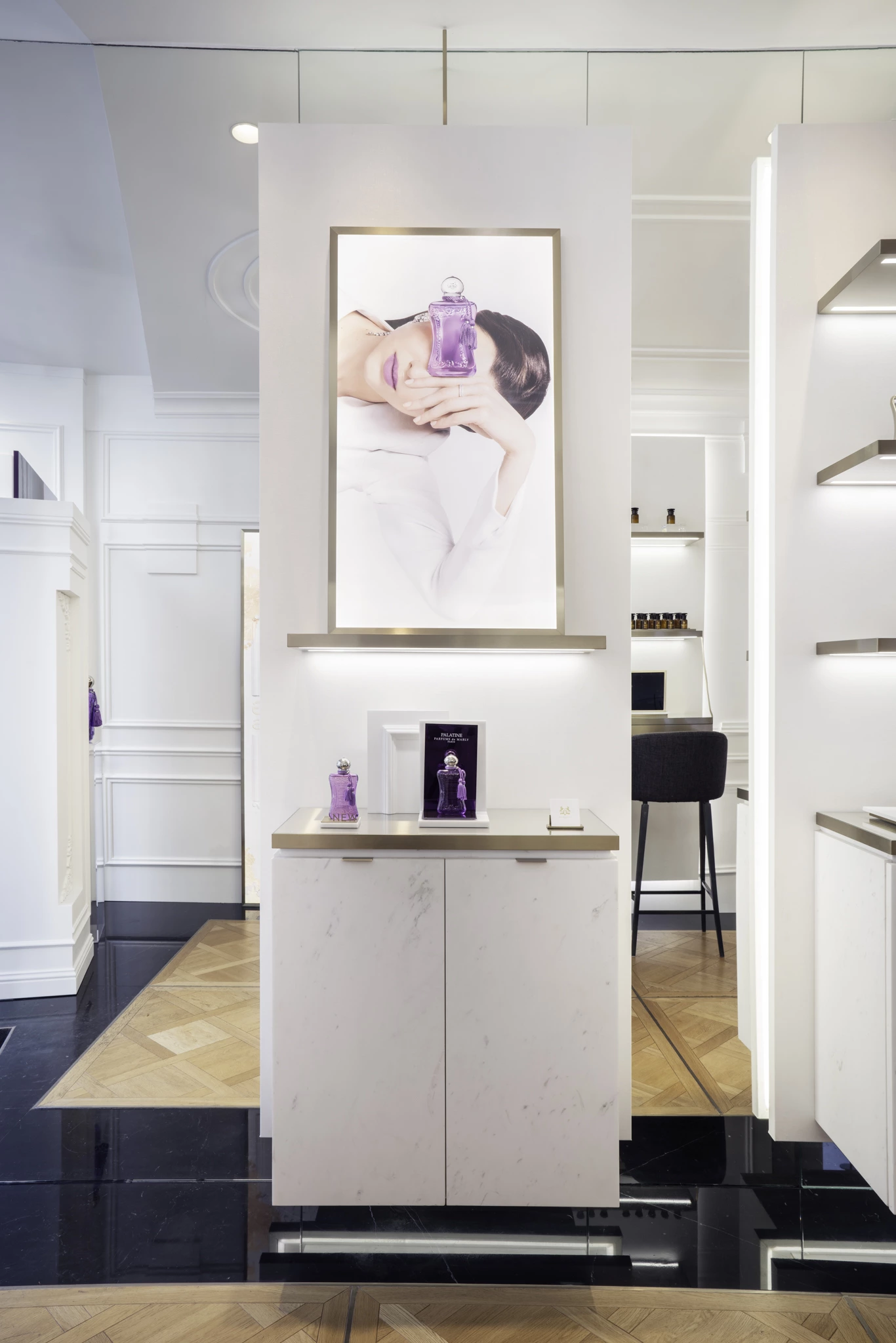 An architectural and visual shoot to capture the storefront and boutique of Parfums de Marly during the launch of the Palatine fragrance.