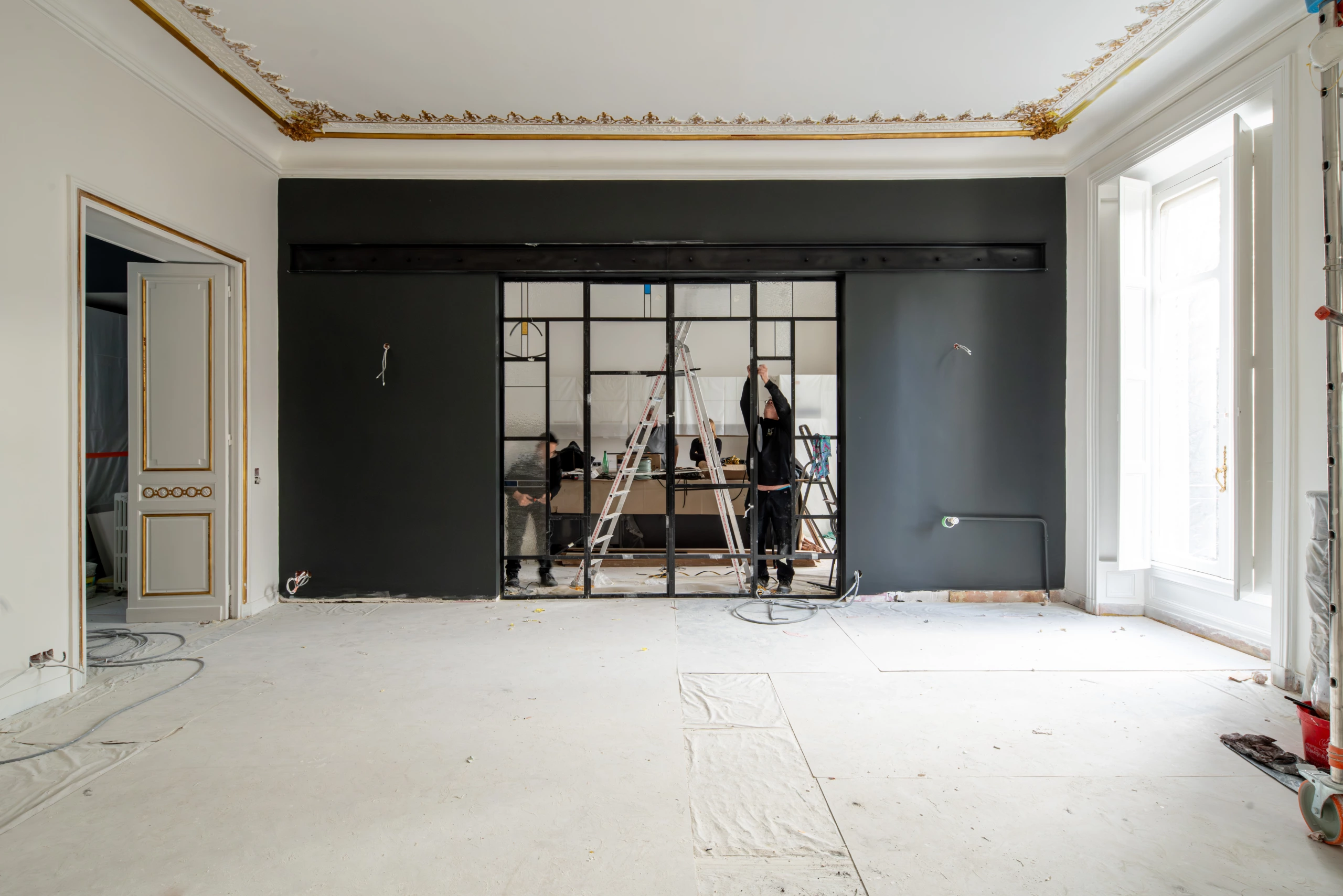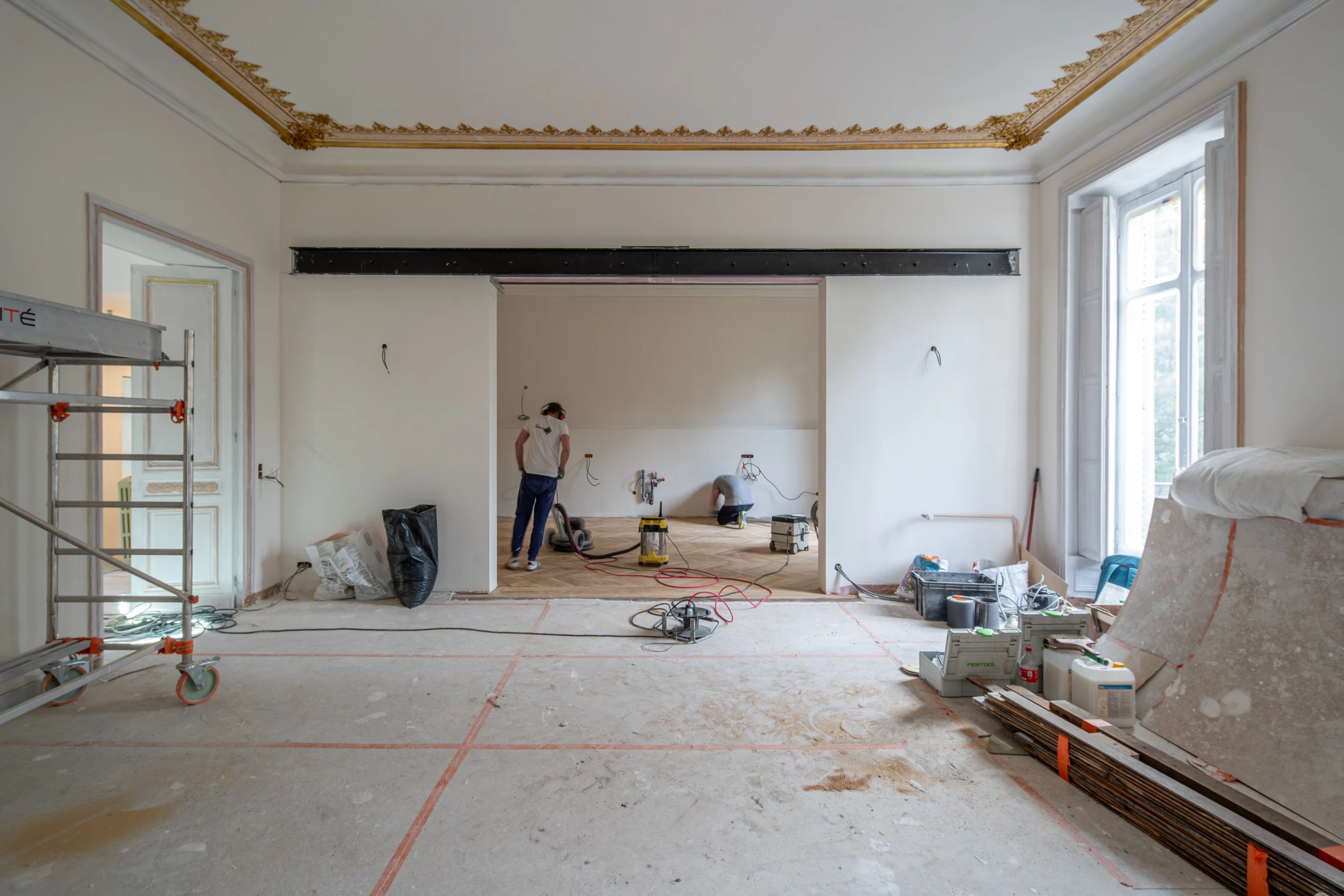 For Illico Travaux, the goal was clear: highlight the transformation of a Parisian apartment while also showcasing the artisans behind those changes. Photographing a construction site is also about telling a story, that of a space in transition, of precise manual work, of expertise rooted in material.