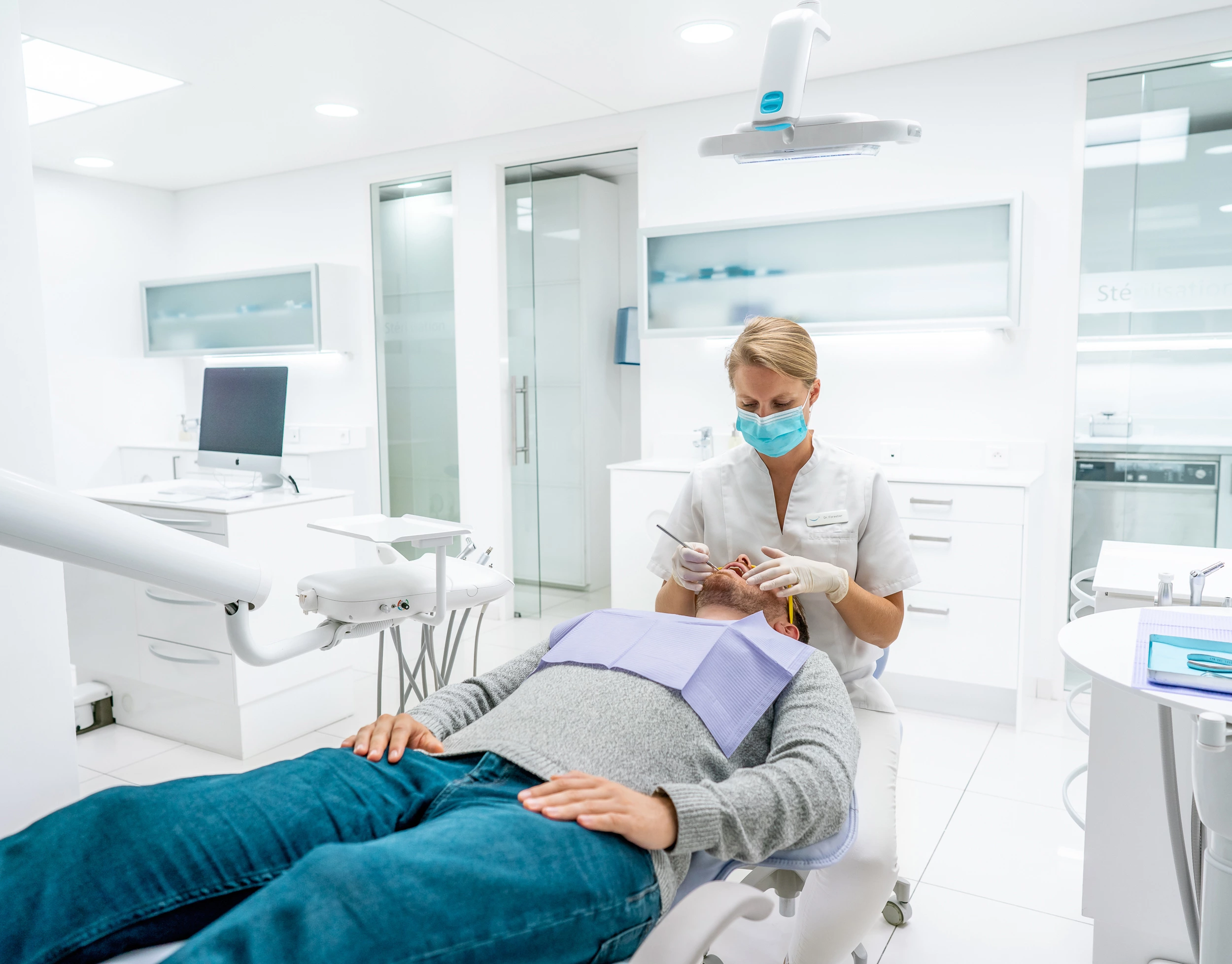La gestion des reflets (inox, vernis, optiques LED) s’appuie sur polarisation croisée, drapeaux et surfaces diffuses pour contrôler les brillances sans “éteindre” les volumes. Nous documentons les positions et articulations (dossier, têtière, accoudoirs, repose-jambes), la console instruments et le bloc hydrique (crachoir, commandes au pied), avec des angles standardisés (face, 3/4, dos, détails macro) et du focus stacking sur les zones techniques (raccords, embouts, commandes).